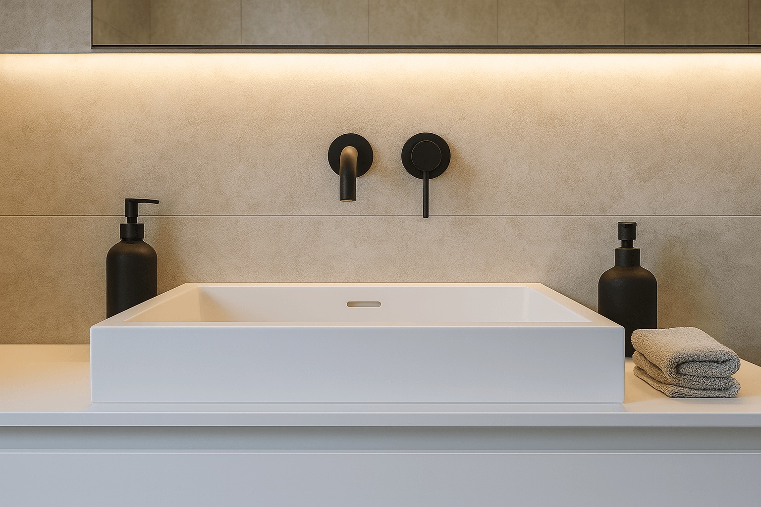 Dieses stilvolle Badezimmerprojekt überzeugt durch ein minimalistisches Design, das Funktionalität und Ästhetik perfekt vereint. Klare Formen, hochwertige Materialien und präzise Handwerksarbeit machen diesen Raum zu einem echten Highlight moderner Badgestaltung.